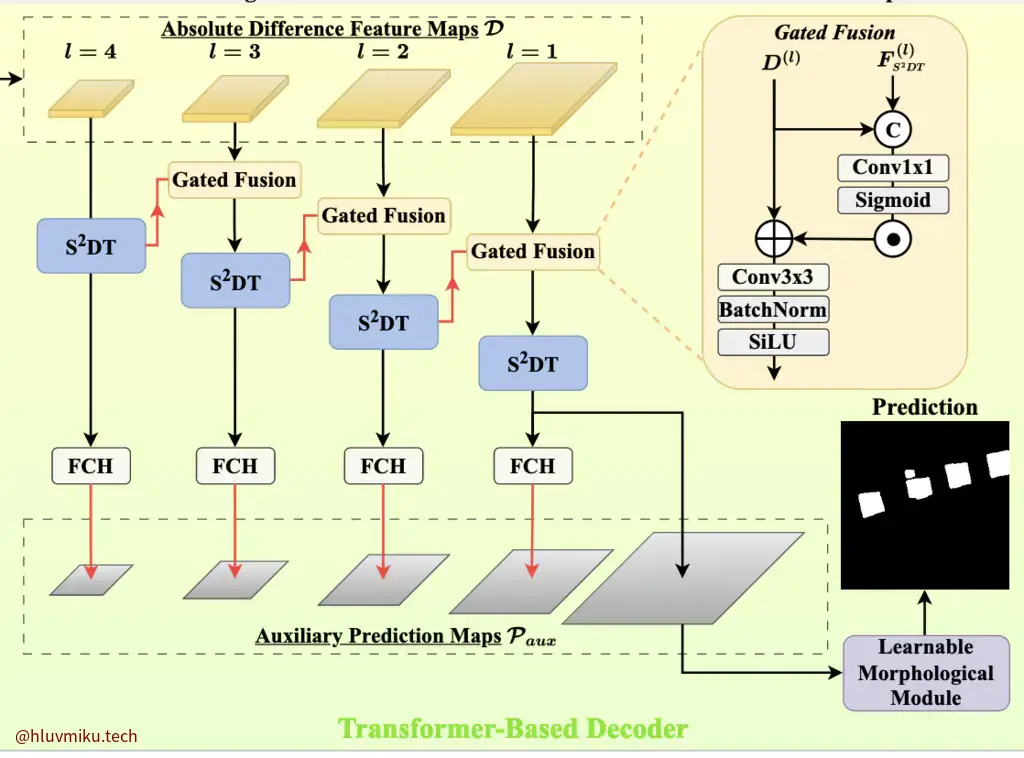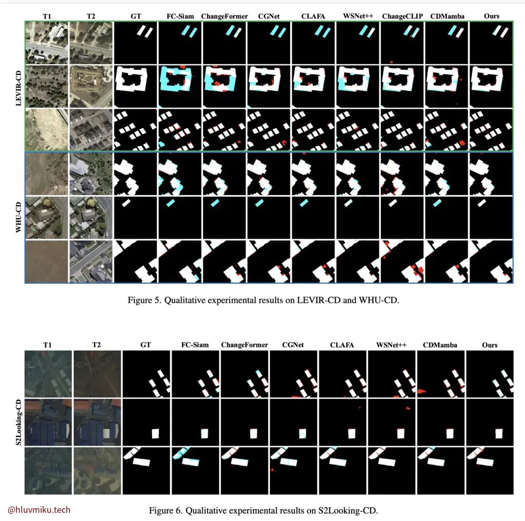 用不同时间的两个feature相减就得到了最后需要使用的feature。拿到feature后就该完成自己的task了: Remote sensing change detection 。这块我不懂,不过他用到了Differential transformer,这还是蛮有趣的。它是在LLM里用来“降噪”的transformer。他说这个差分注意力机制