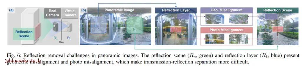 Most perspectivebased methods assume the whole image is glass-mixed with weak and blurred reflections, which often fails in 360 panoramas, making transmission–reflection separation particularly challenging.